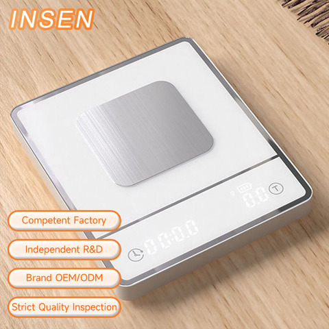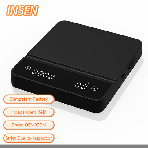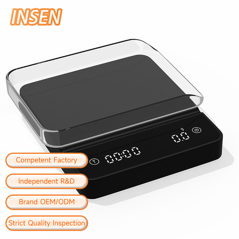 OEM Basics Kaffee waage 2000g 0,1g Hochpräzise Batterie aufladen Küchen waage Timer Gewichts waage Mini-Kaffee waage mit Tablett